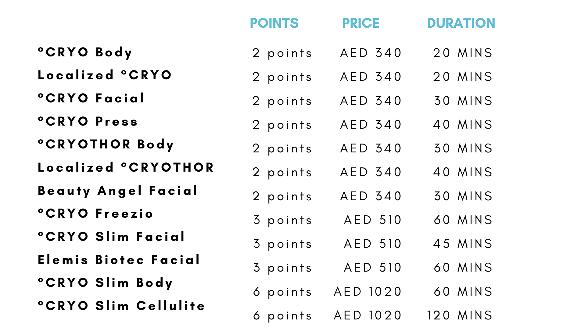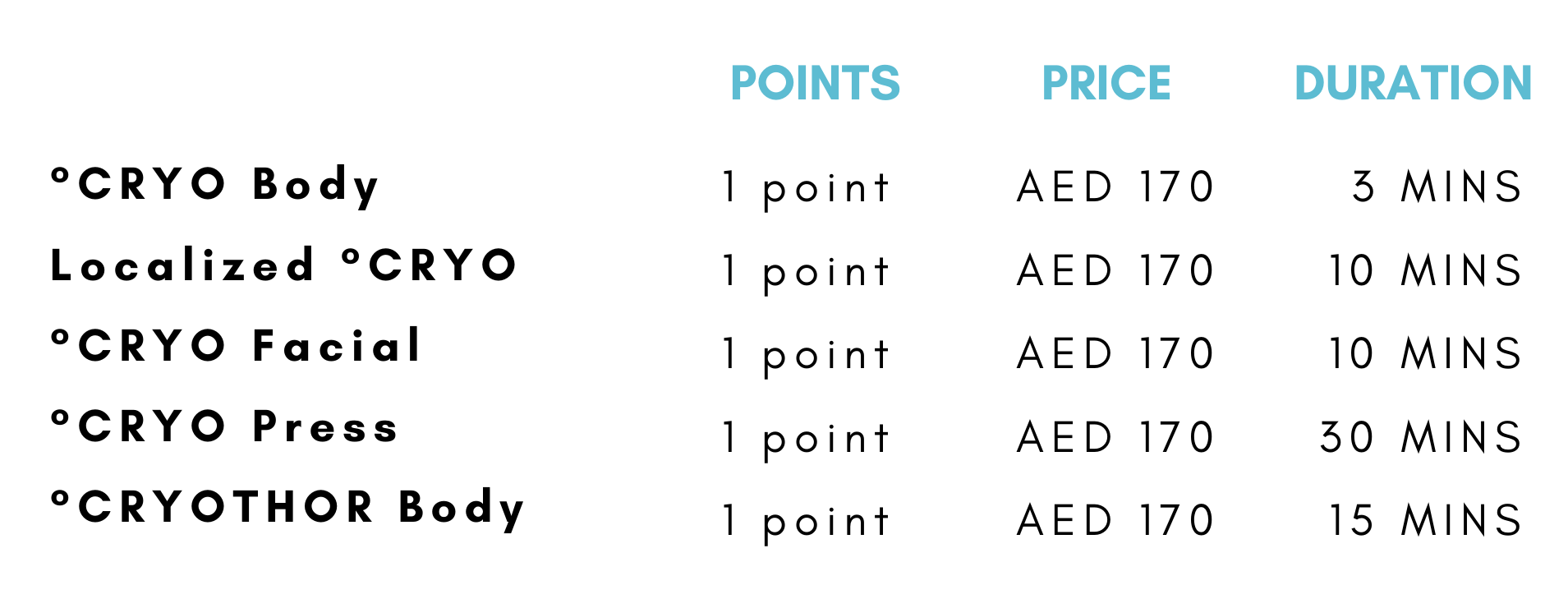 - Points can be used towards °CRYO Express & °CRYO Deluxe treatments